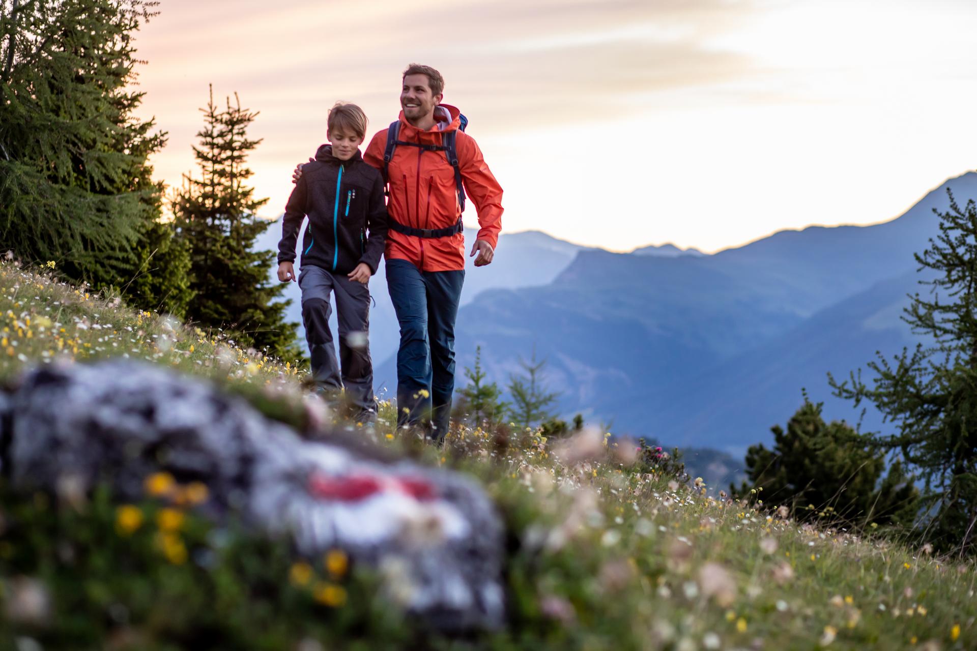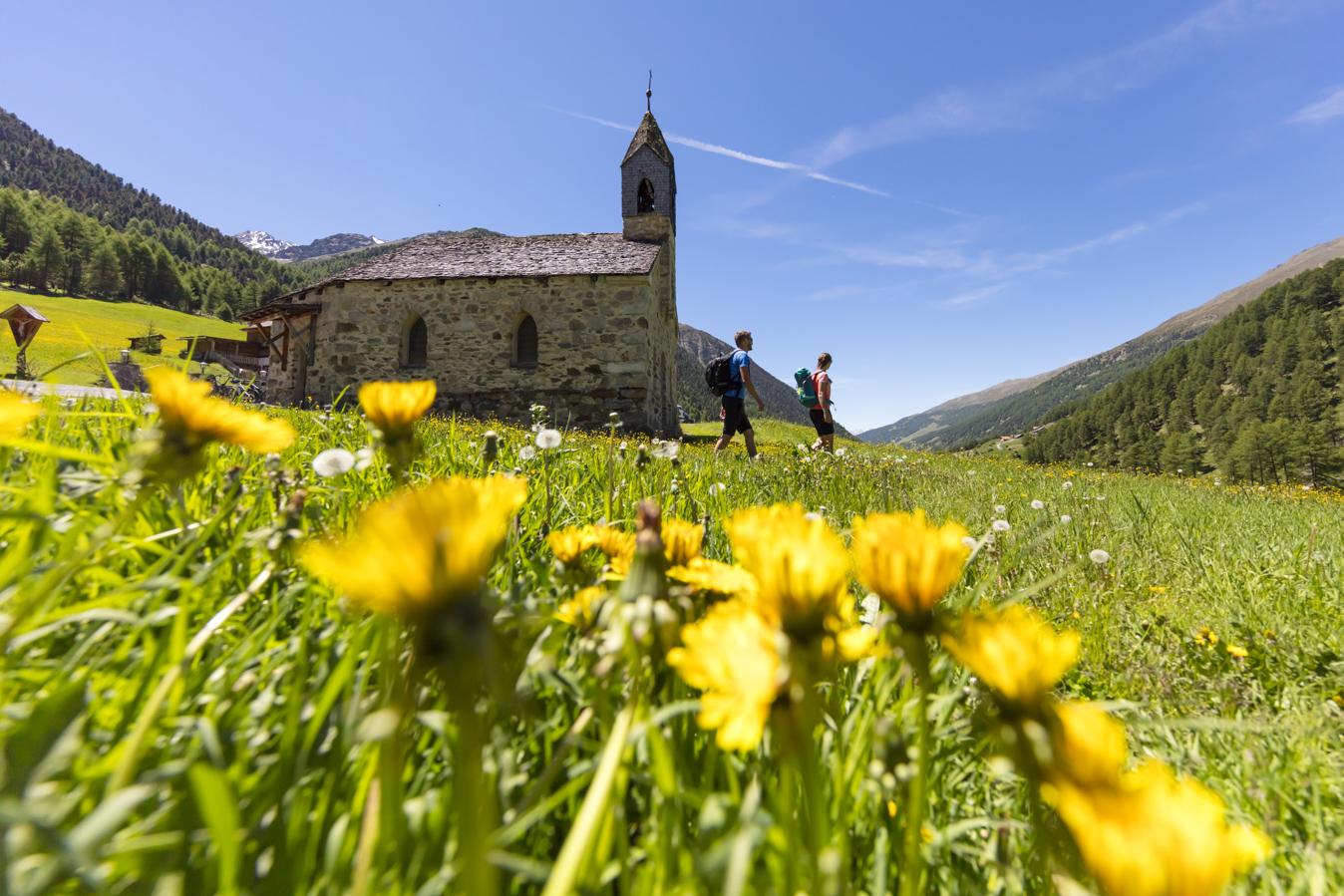 Scenic high trails, especially the Langtauferer high mountain trail and the Schöneben-Haideralm panoramic trail, impress with their sweeping views over the wide valley. On classic Waalwege routes following ancient water channels, you can hike accompanied by a refreshing sense of coolness and fascinating history. Attractive themed paths like the informative trail to the Weißkugelhütte mountain hut, the Talai adventure trail or the legendary Vinschger high mountain trail which begins right at the source of the river Etsch, are all part of the experience.