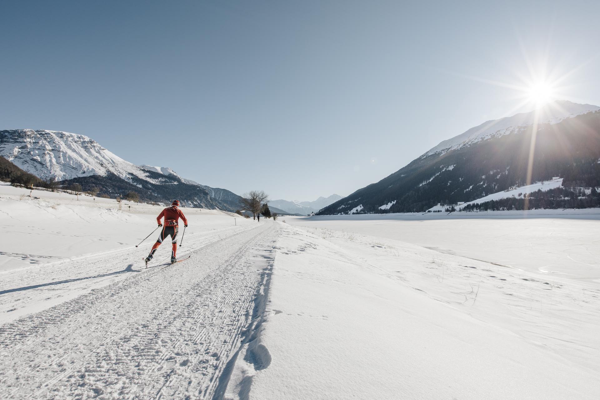 Cross-country skiing enthusiasts have every reason to smile in the Holiday region Reschensee lake. Perfectly groomed trails, spectacular mountain scenery and absolute snow sureness make every Nordic adventure a delight. Whether along the lakeshore, through the idyllic Langtauferertal valley or across the borders in the tripoint area: classic and skating fans alike will find routes suited to their fitness level.