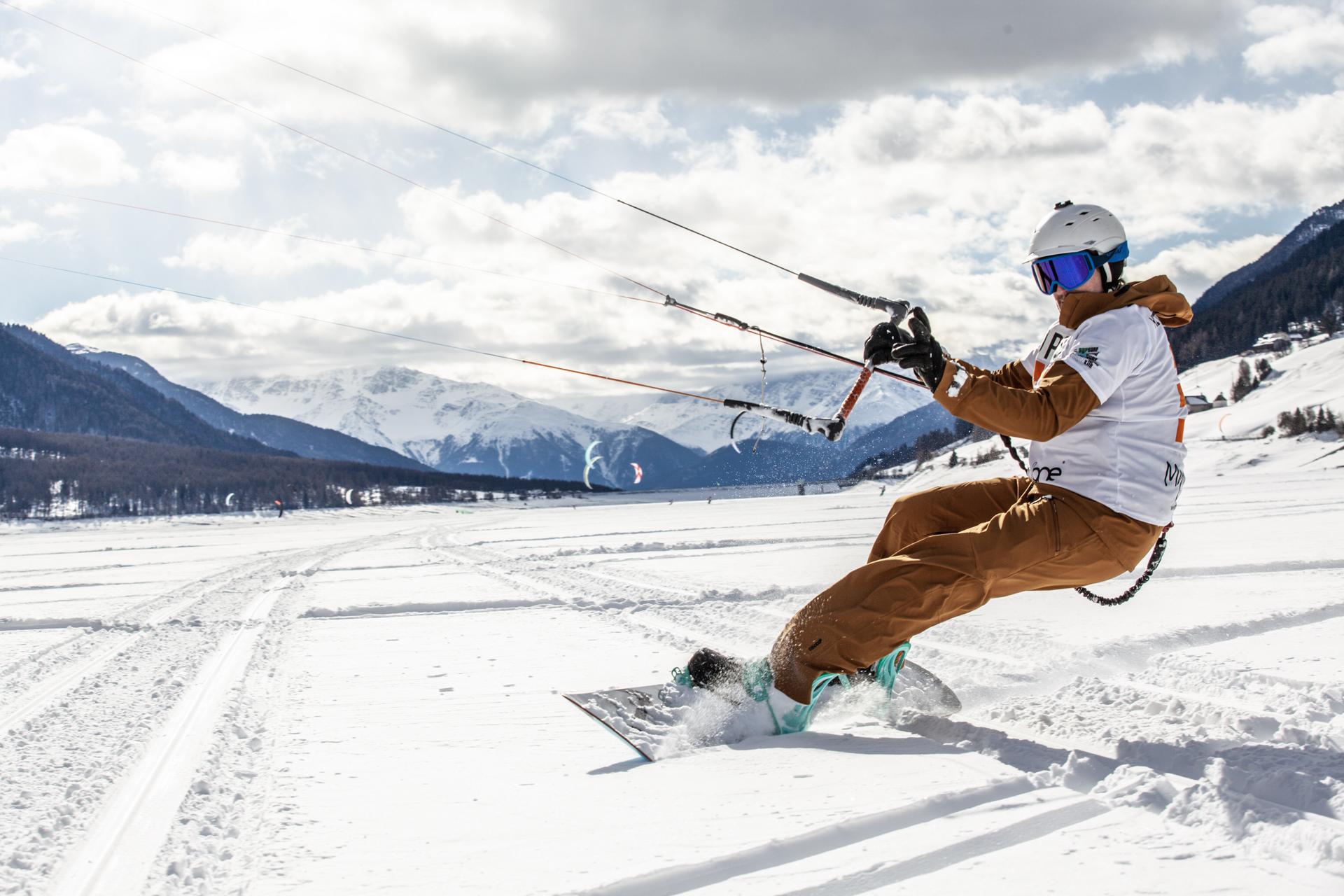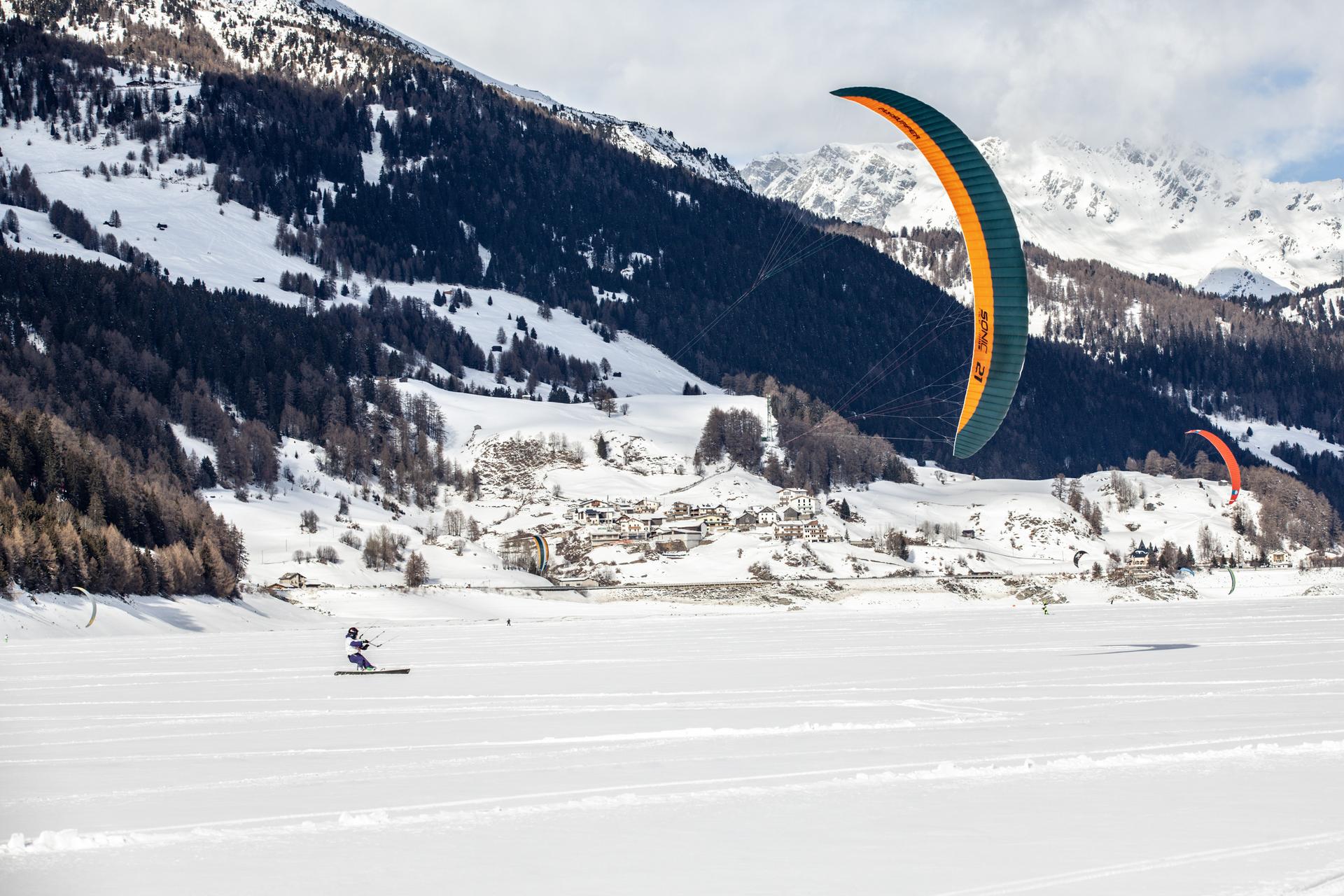 Want to learn snowkiting, or take your skills from confident rider to true pro? Get in touch with the snowkite schools at Reschensee lake: