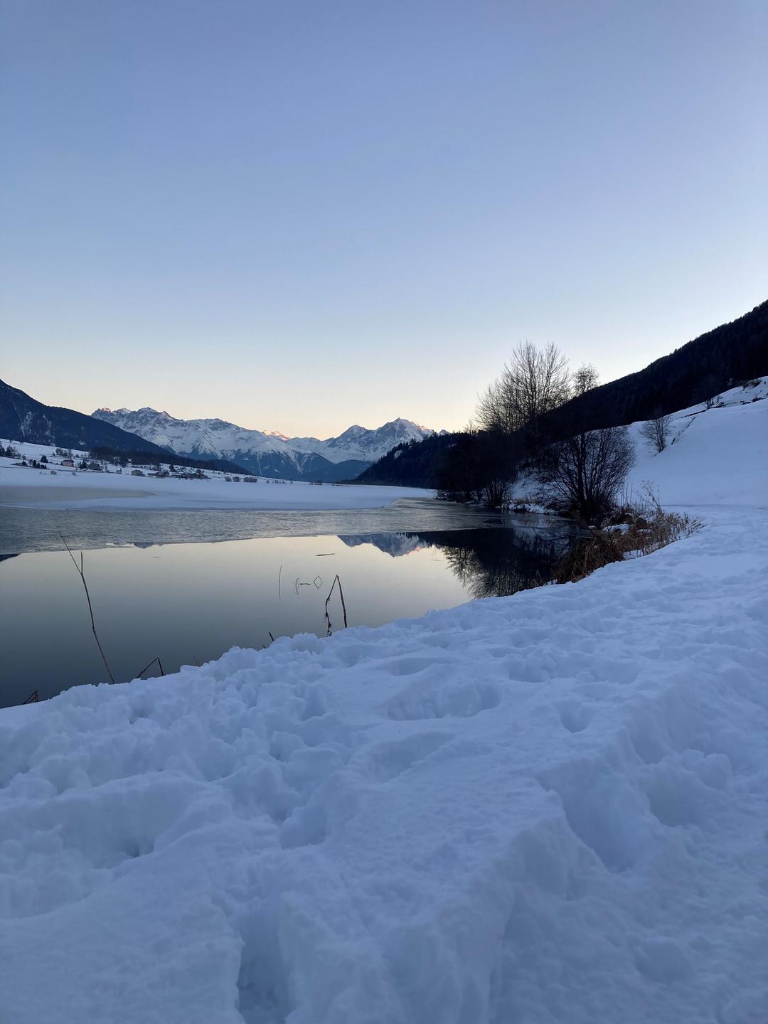 Around Reschensee lake, the choice is endless. The alternatives to skiing are both bountiful and tempting. Some 60 kilometres of groomed winter hiking trails invite you to explore and discover the magic of winter. Snowshoe hikers and ski tourers alike find their dream routes at every turn.