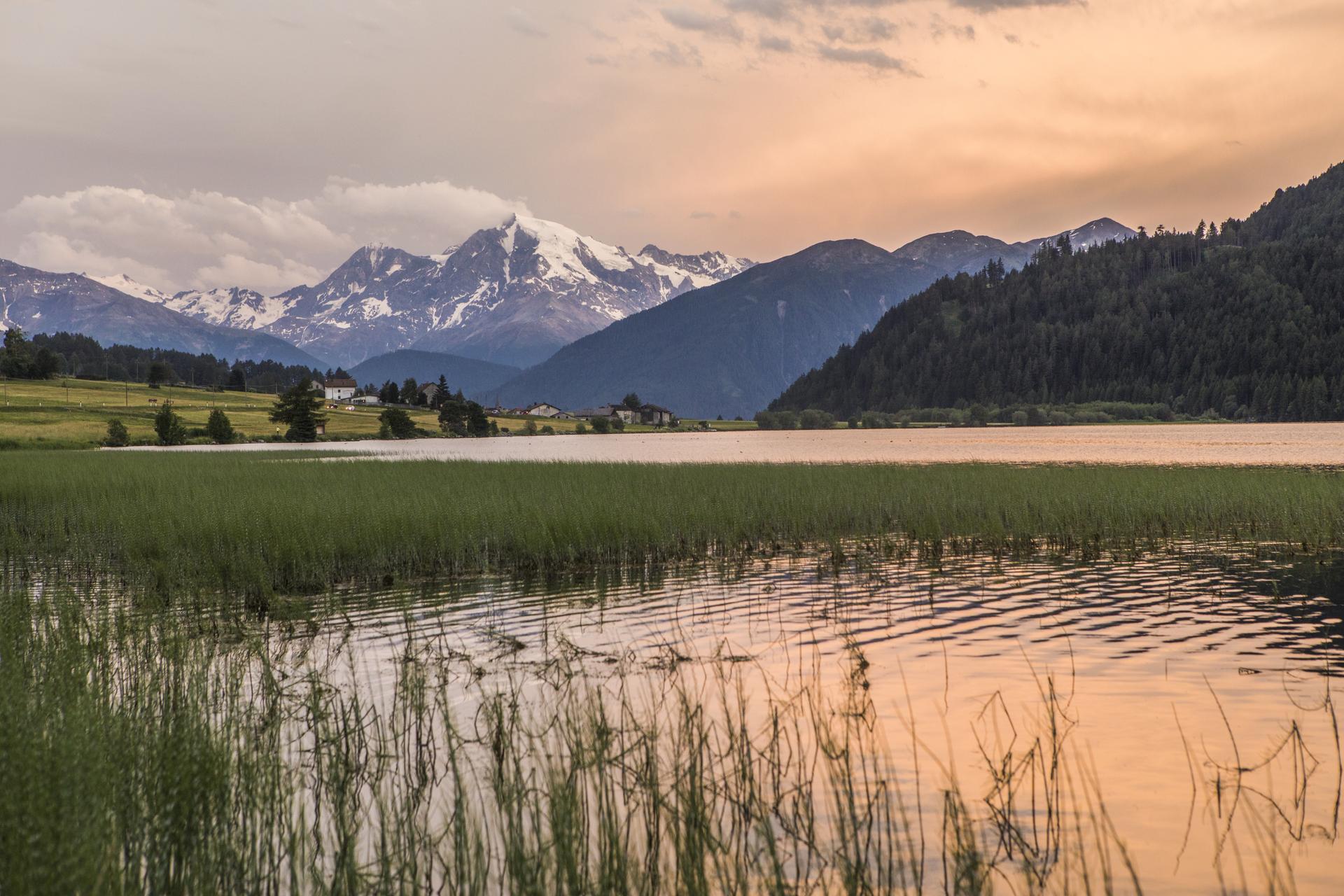 St. Valentin auf der Haide is a part of the municipality of Graun and lies in the heart of the Oberer Vinschgau. This charming little village impresses visitors with its quiet location between Reschensee lake and the natural Haidersee lake - two of the most beautiful lakes in South Tyrol. The view of the mighty Ortler massif, at 3905 metres the highest mountain in South Tyrol, is simply breathtaking.