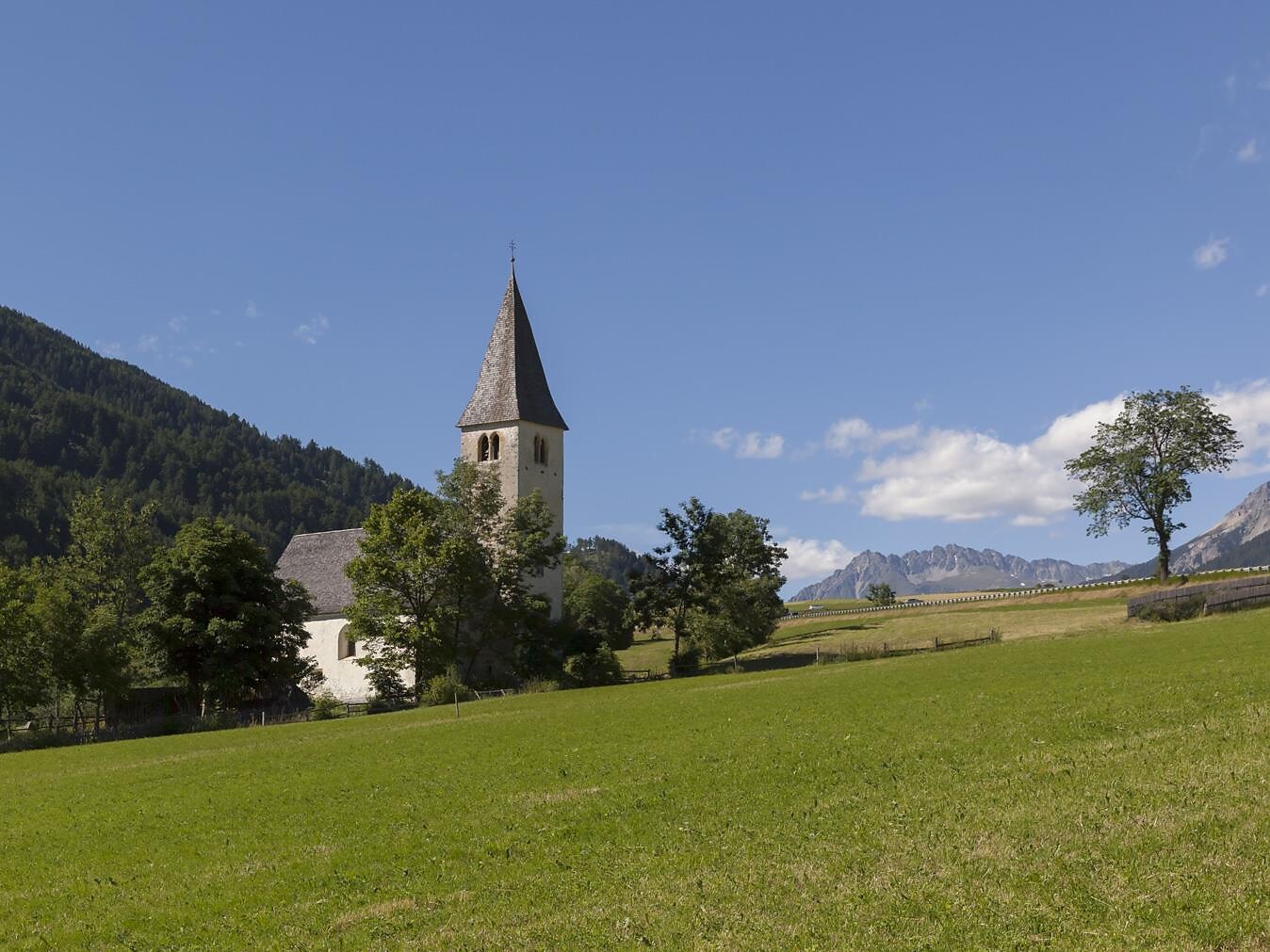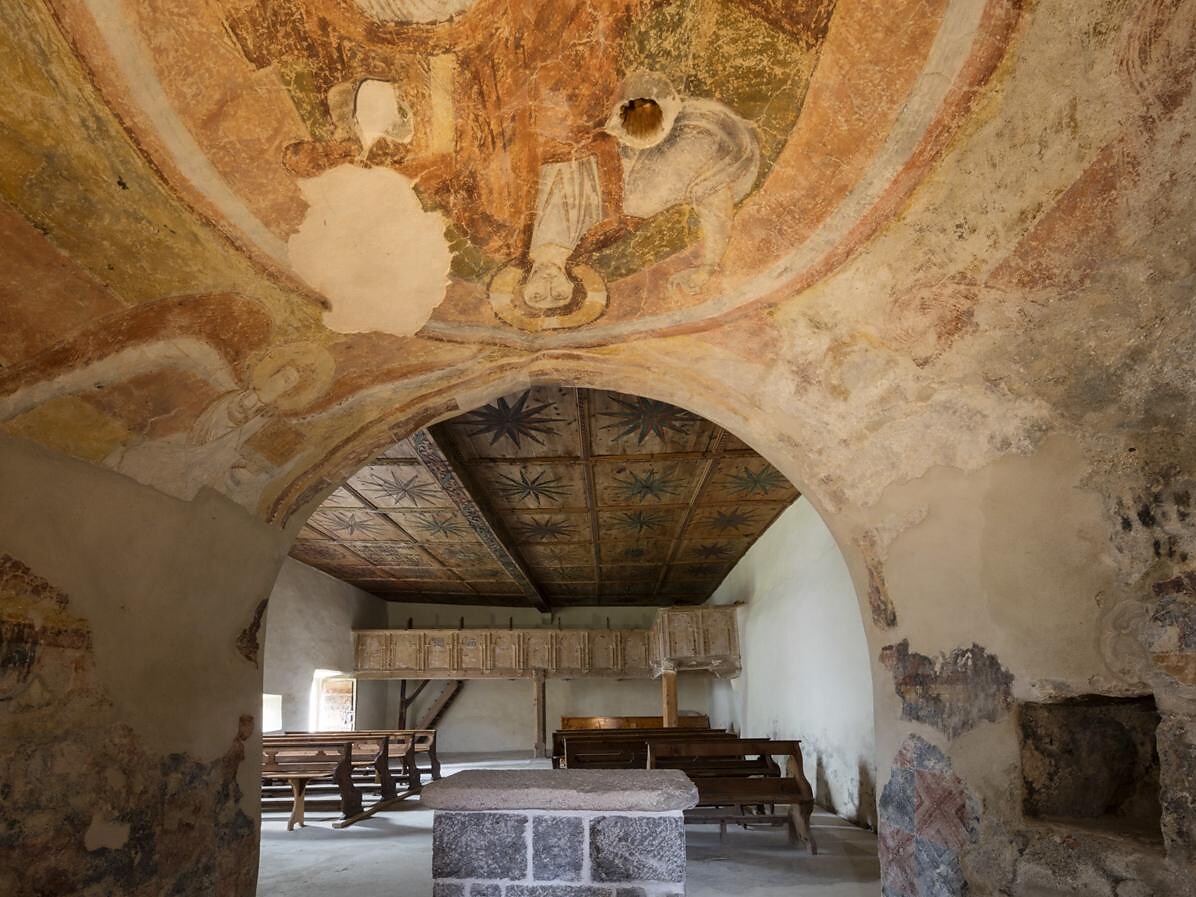 Die St. Nikolaus Kirche wurde im Jahre 1199 geweiht. Bekannt ist das Kirchlein für seine Kassettendecke aus dem 16. Jahrhundert, auf der ein Narr im Waschzuber abgebildet ist. Das Langhaus ist flach gedeckt und mit Schlitzfenstern versehen. In der halbrund gewölbten Apsis finden sich Freskenreste aus dem 13. Jahrhundert, darunter auch ein gut erhaltenes Fresko des Christus in der Mandorla.