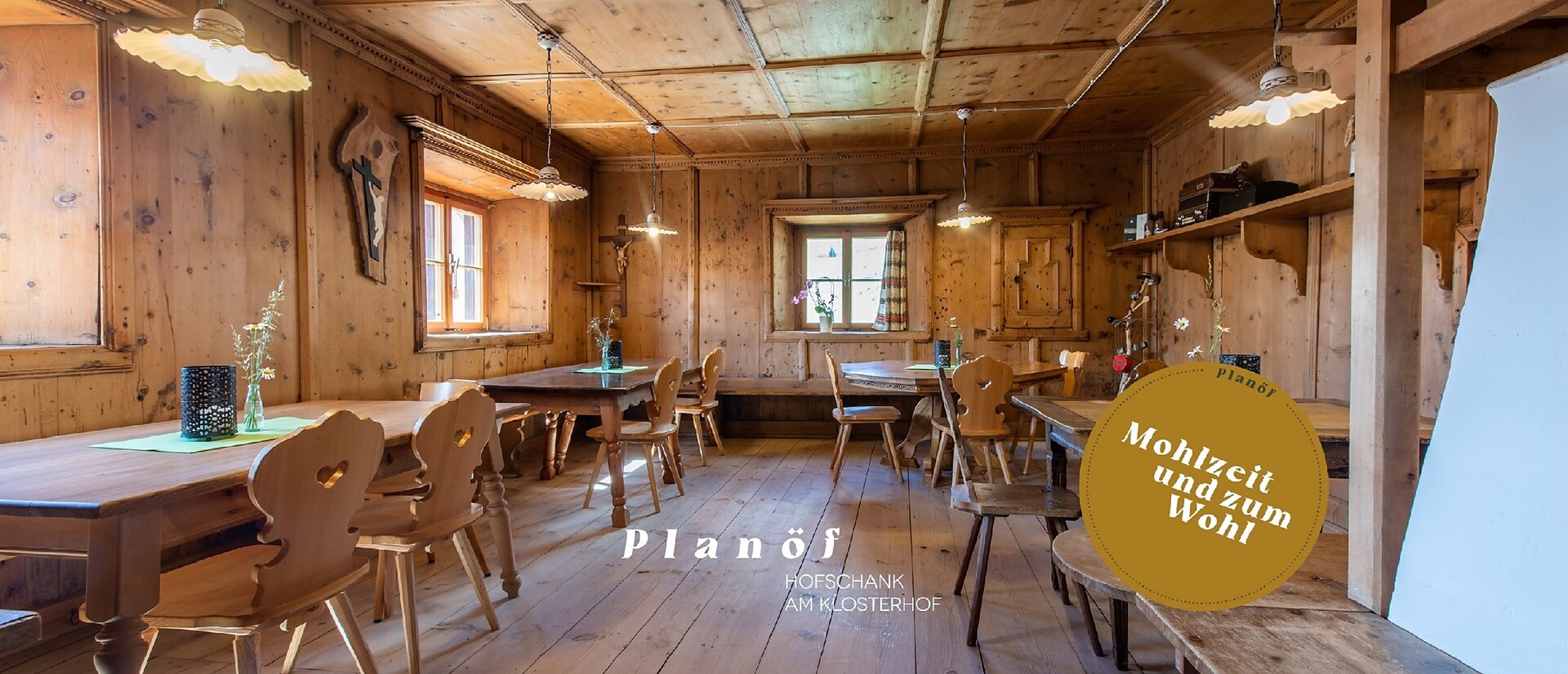 gemütlichem Beisammensein und für verschiedene Feierlichkeiten ein. Genießen Sie die wunderbare Aussicht auf die Obervinschger Bergwelt bei einer leckeren Marende.