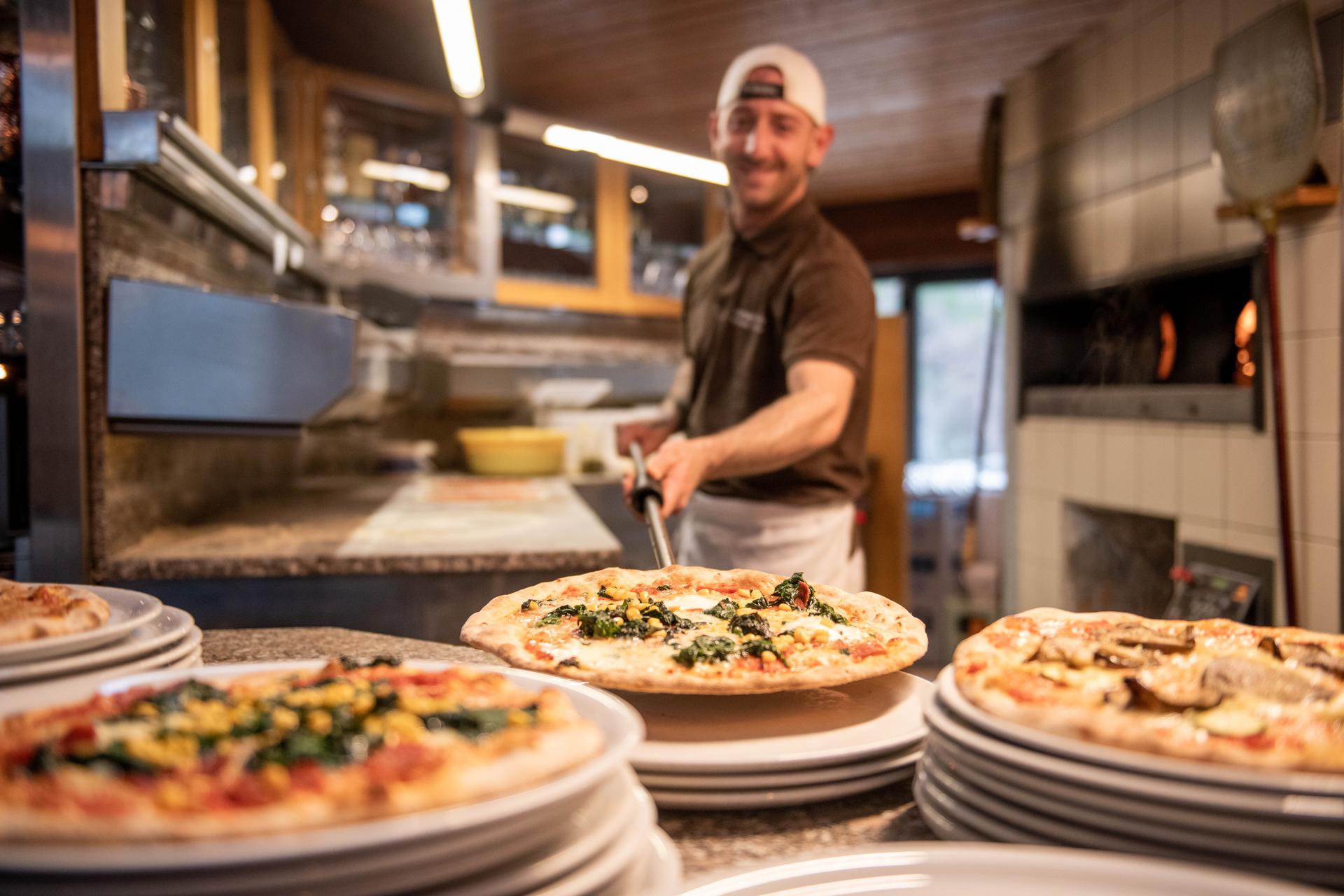Con cosa desiderate concludere la vostra giornata all’insegna dello sport? Potrete scegliere tra pizze croccanti cotte nel tradizionale forno a legna italiano, coloratissimi piatti di insalata e autentiche specialità altoatesine, il tutto accompagnato da una bevanda rinfrescante, una birra fresca o un buon calice di vino.