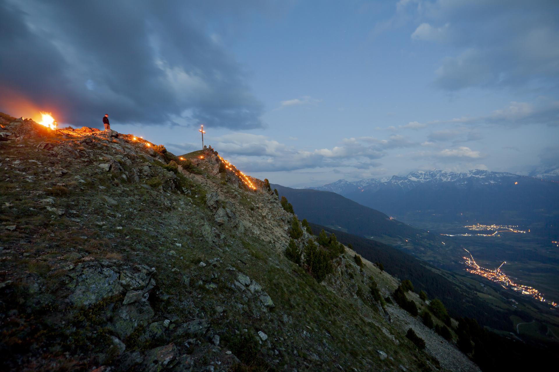 La terza domenica dopo Pentecoste, i “Fuochi del Sacro Cuore” illuminano i dorsali delle montagne altoatesine.