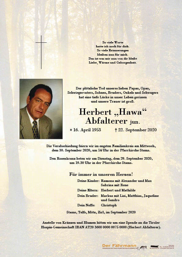 Kondolenzbuch für Abfalterer Herbert