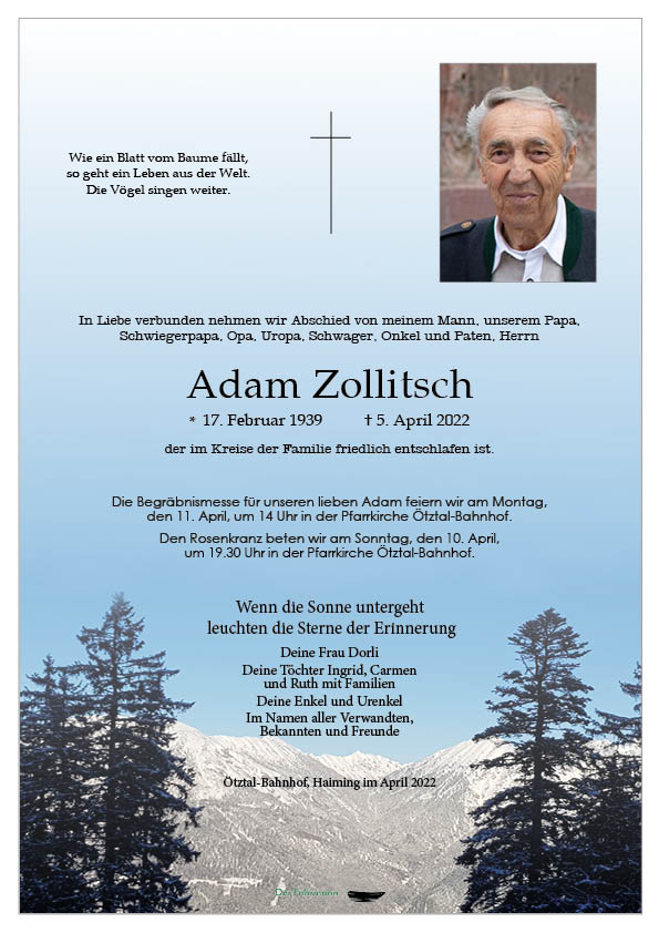Kondolenzbuch für Adam Zollitsch