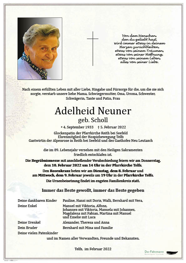 Kondolenzbuch für Adelheid Neuner