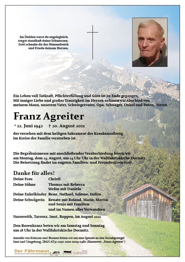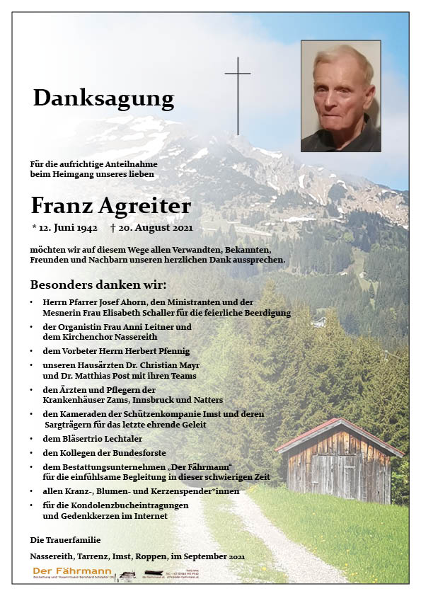 Kondolenzbuch für Agreiter Franz