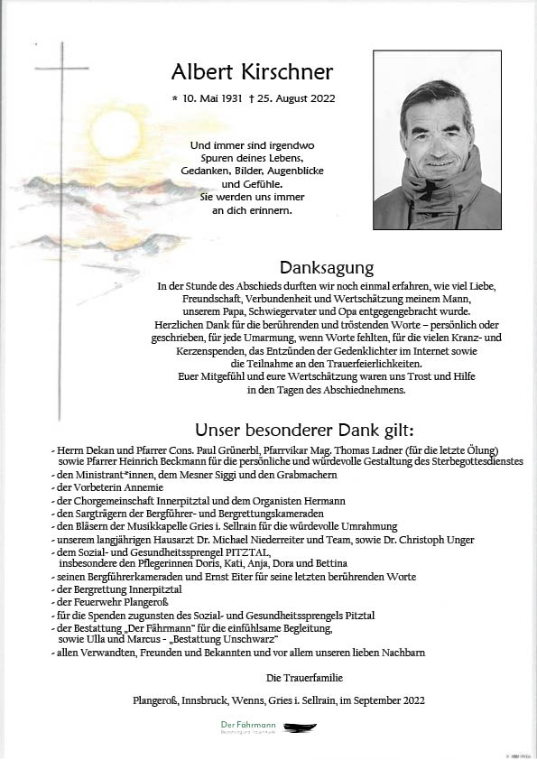 Danke für die schönen Bergtouren - RIP Familie Rofner Telfs