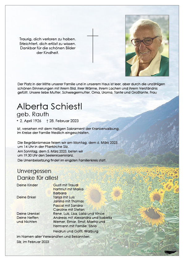 Aufrichtiges Beileid! Fam. Leiter Alois