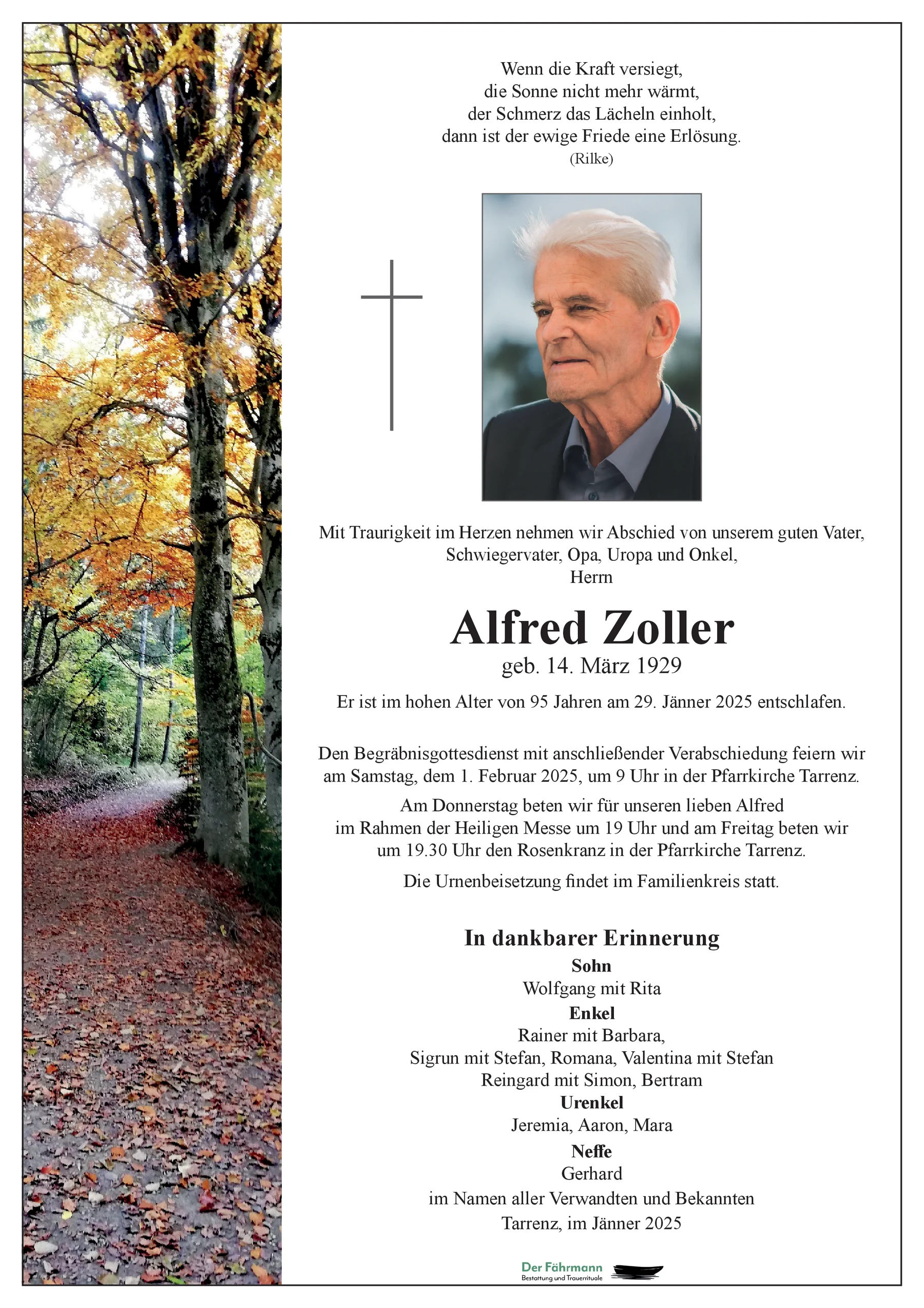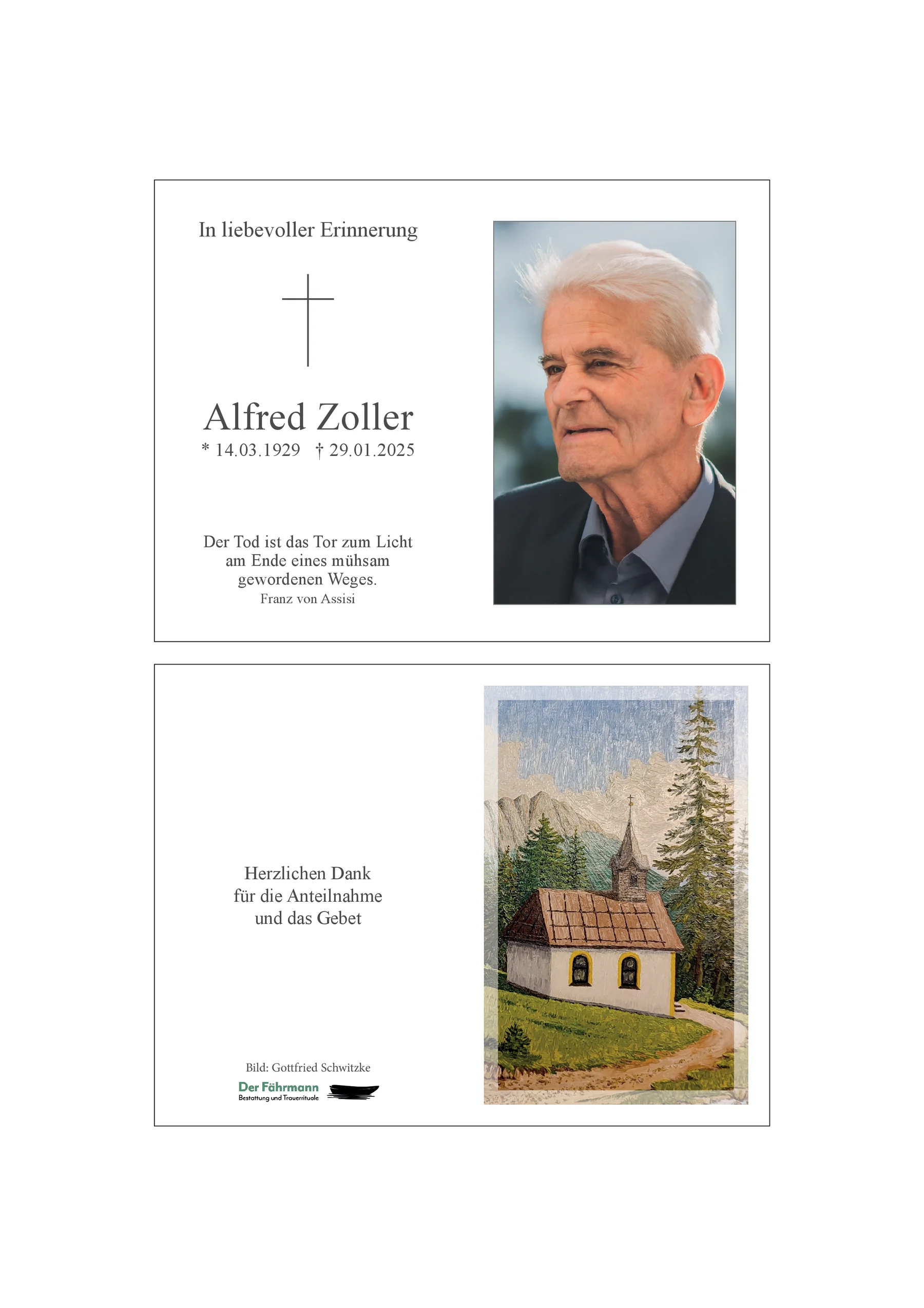 Kondolenzbuch für Alfred Zoller