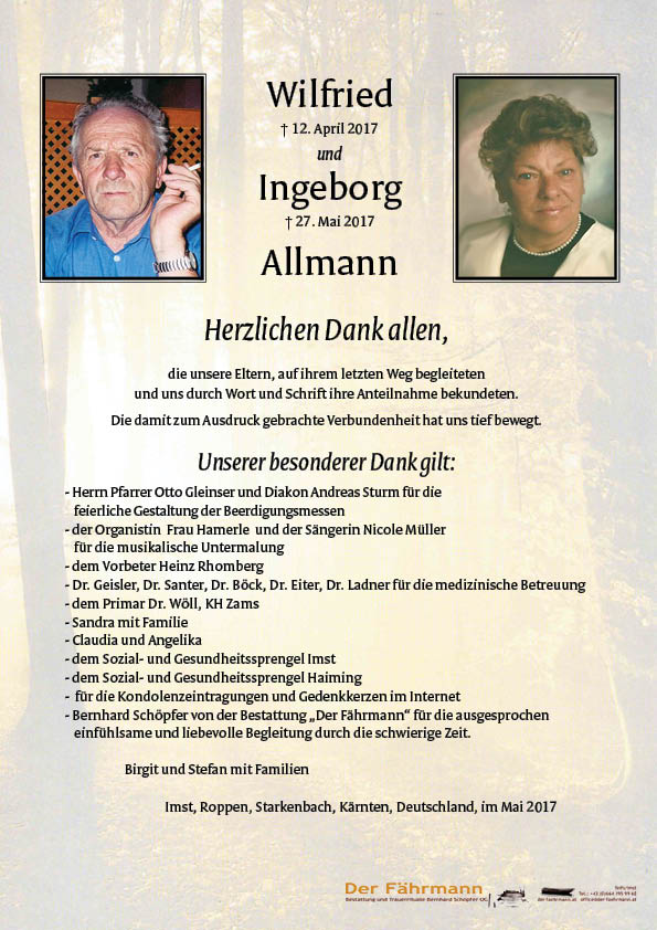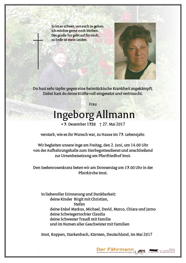 Kondolenzbuch für Allmann Ingeborg