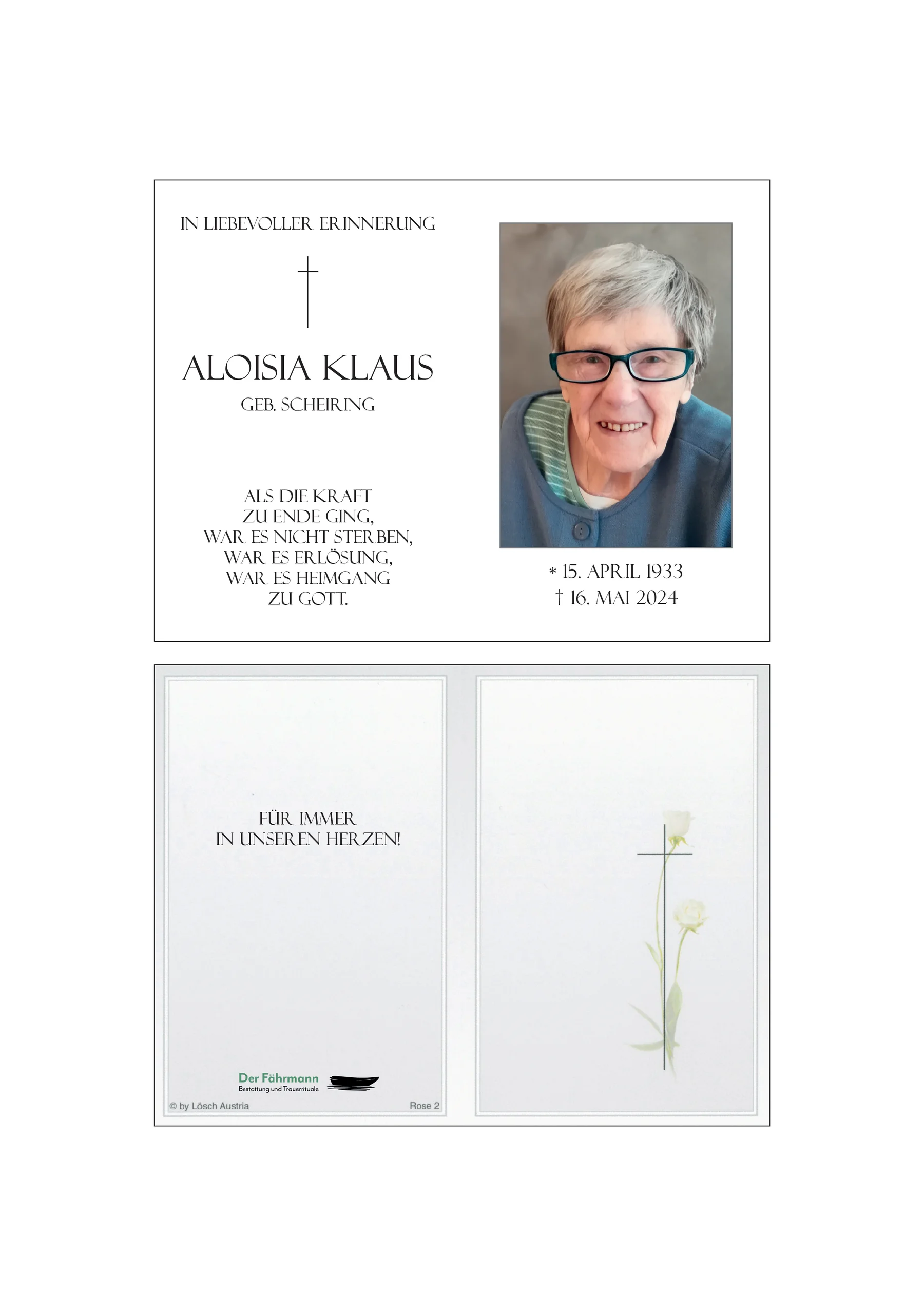 In liebevollem Gedenken Manfred und Irene Klaus mit Familie