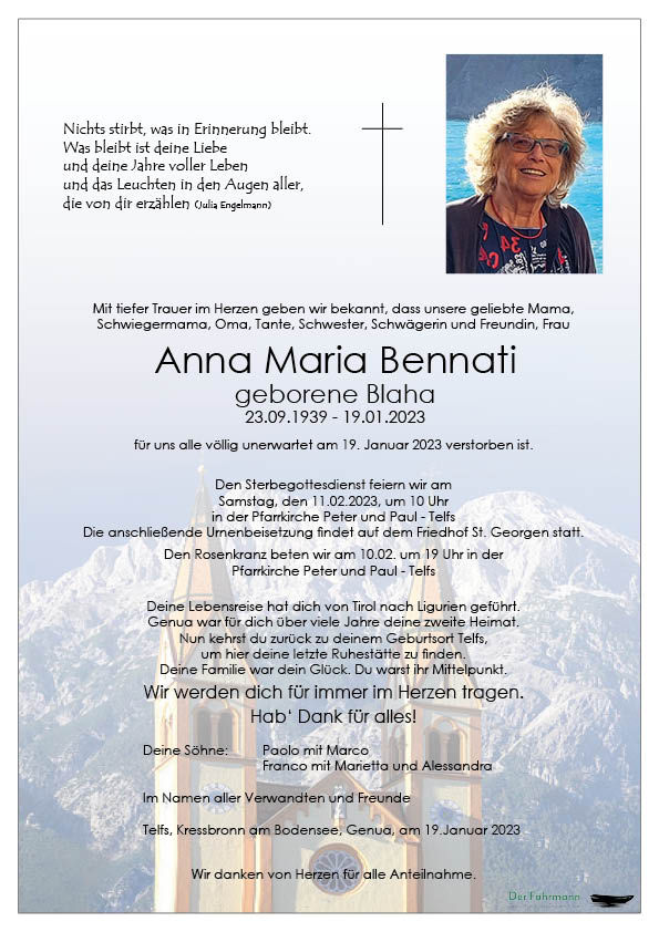 Unvergessliche Kindheitserinnerungen in der Pfarrer Gritsch Straße verbinden mich mit dir Annemarie. Fröhliches treiben im ganzen Haus und der melodische Klang der italienischen Sprache-das war Sommer. Ihr habt die Ferien meist in Telfs verbracht, Pauli und Franco waren geliebte Spielkameraden.Viele tolle Sommerfeste am Bienenhaus
