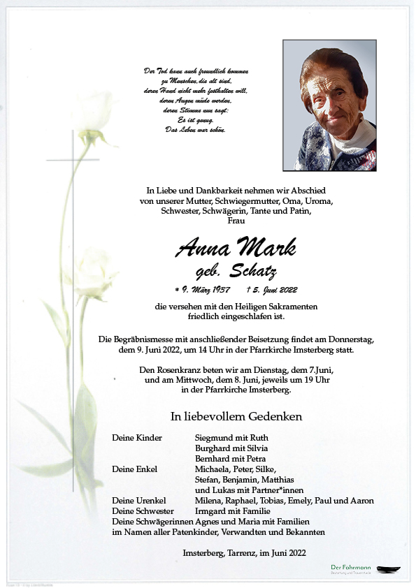 Ruhe in Frieden - Rosa Rangger Schönwies