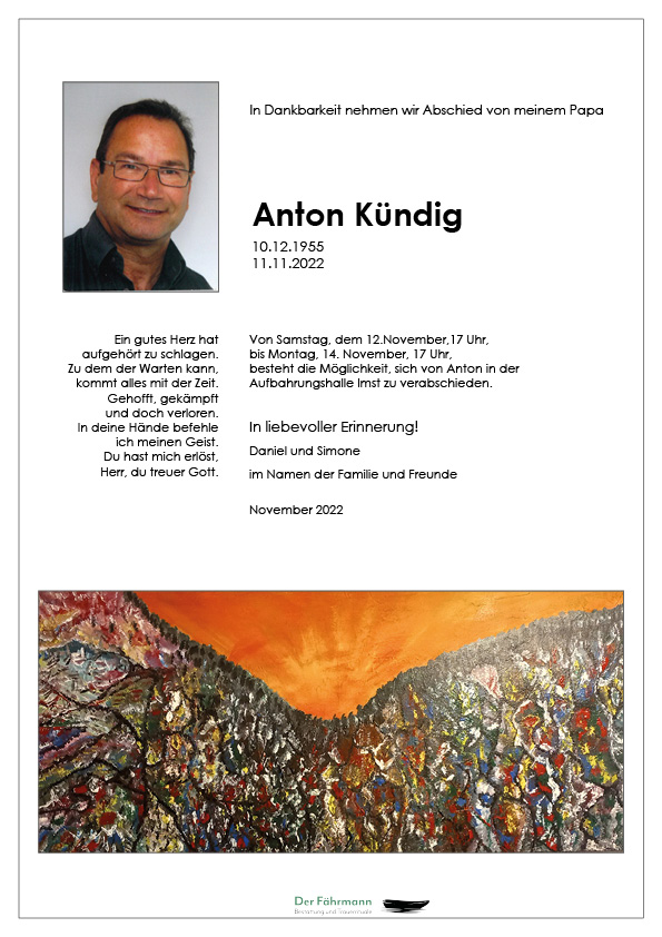 Zum Tod deines Vaters möchte ich dir mein tiefes Mitgefühl aussprechen und euch Kraft und Zuversicht für die Zukunft wünschen.