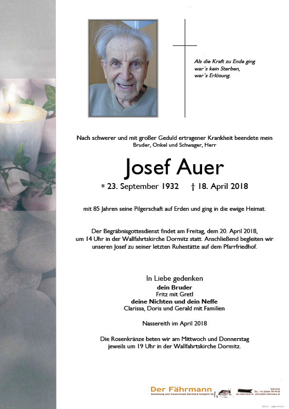 Kondolenzbuch für Auer Josef