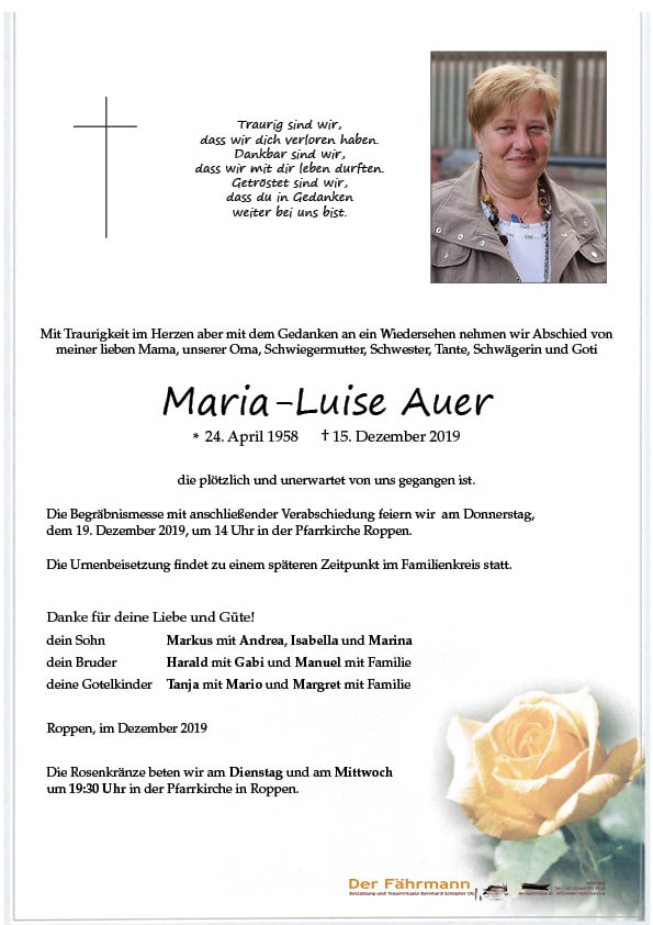Unser aufrichtiges Beileid Verena mit Familie Mair