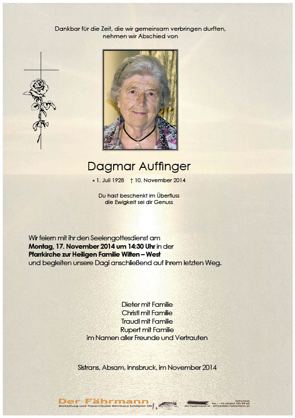 Kondolenzbuch für Auffinger Dagmar