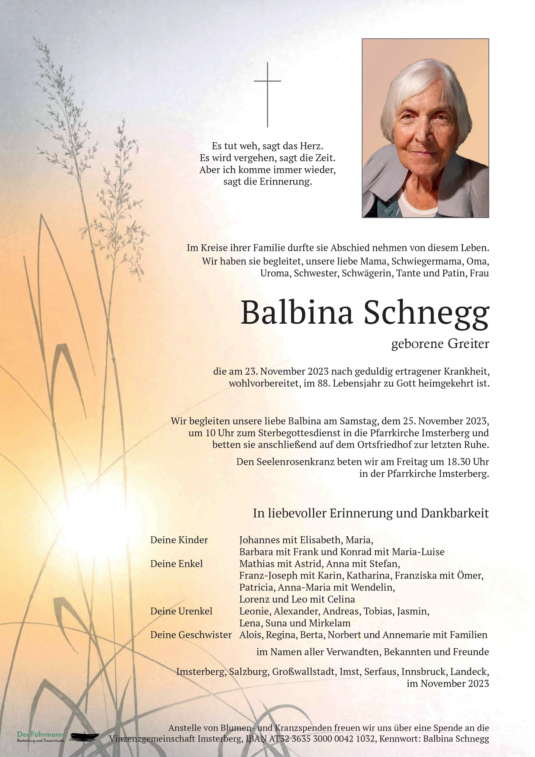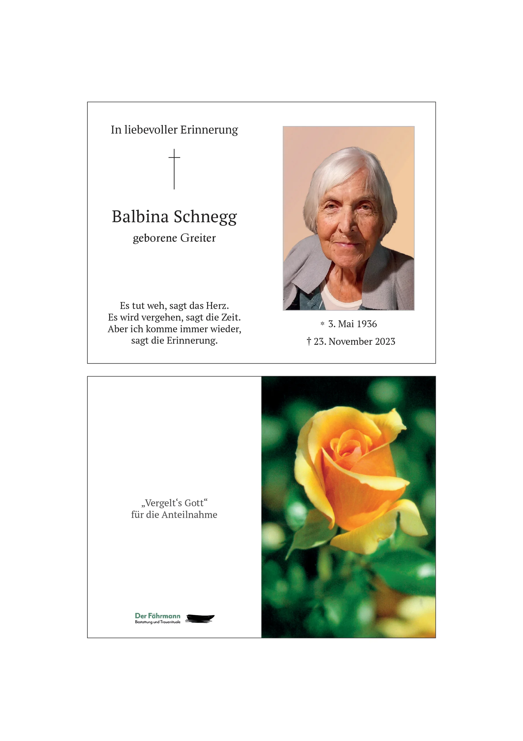 es ist sehr traurig, die liebe Mutter und Oma, eure liebe Balbina zu verlieren. Sie war tief verbunden im Glauben und ist nun auf der anderen Seite. Von dort wird sie über euch wachen und euch beistehen bis zum Wiedersehen. Ihre bescheidene und fröhliche Art wird uns für immer in Erinnerung bleiben.