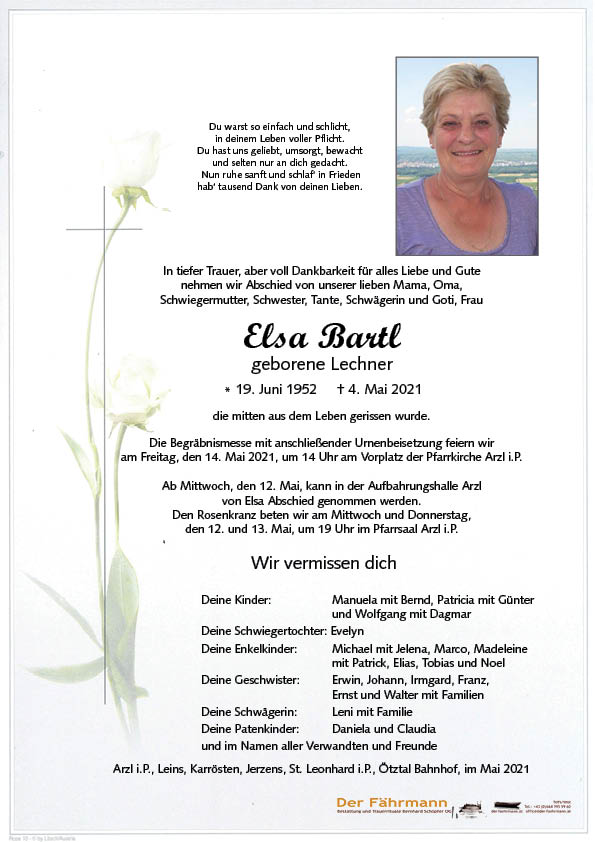 Aufbahrungs-Ort: ab Mi, dem 12.05. und Do. dem 13.05. in der Aufbahrungshalle Arzl i.P.