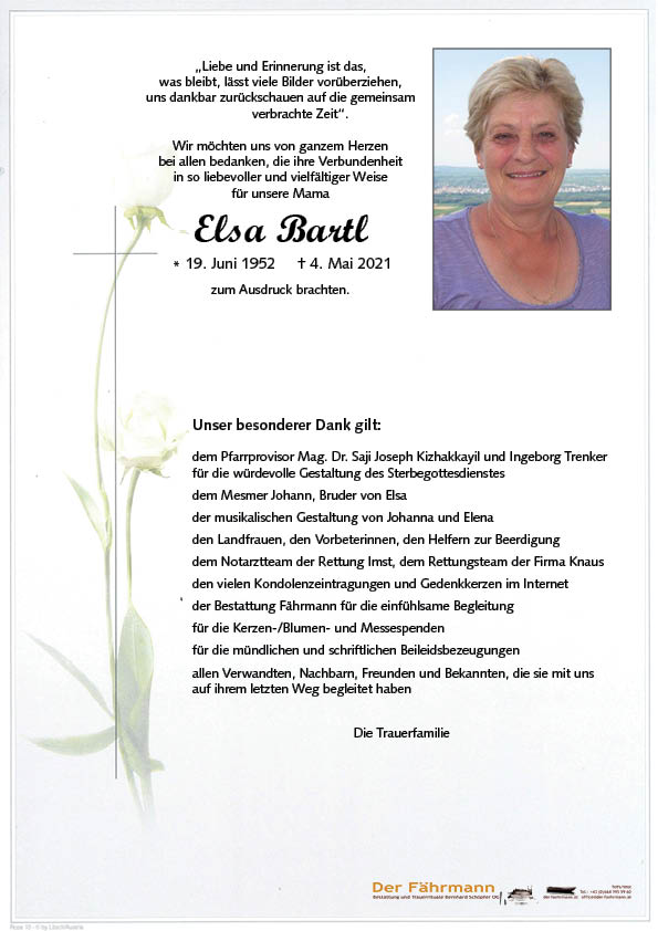 Kondolenzbuch für Bartl Elisabeth