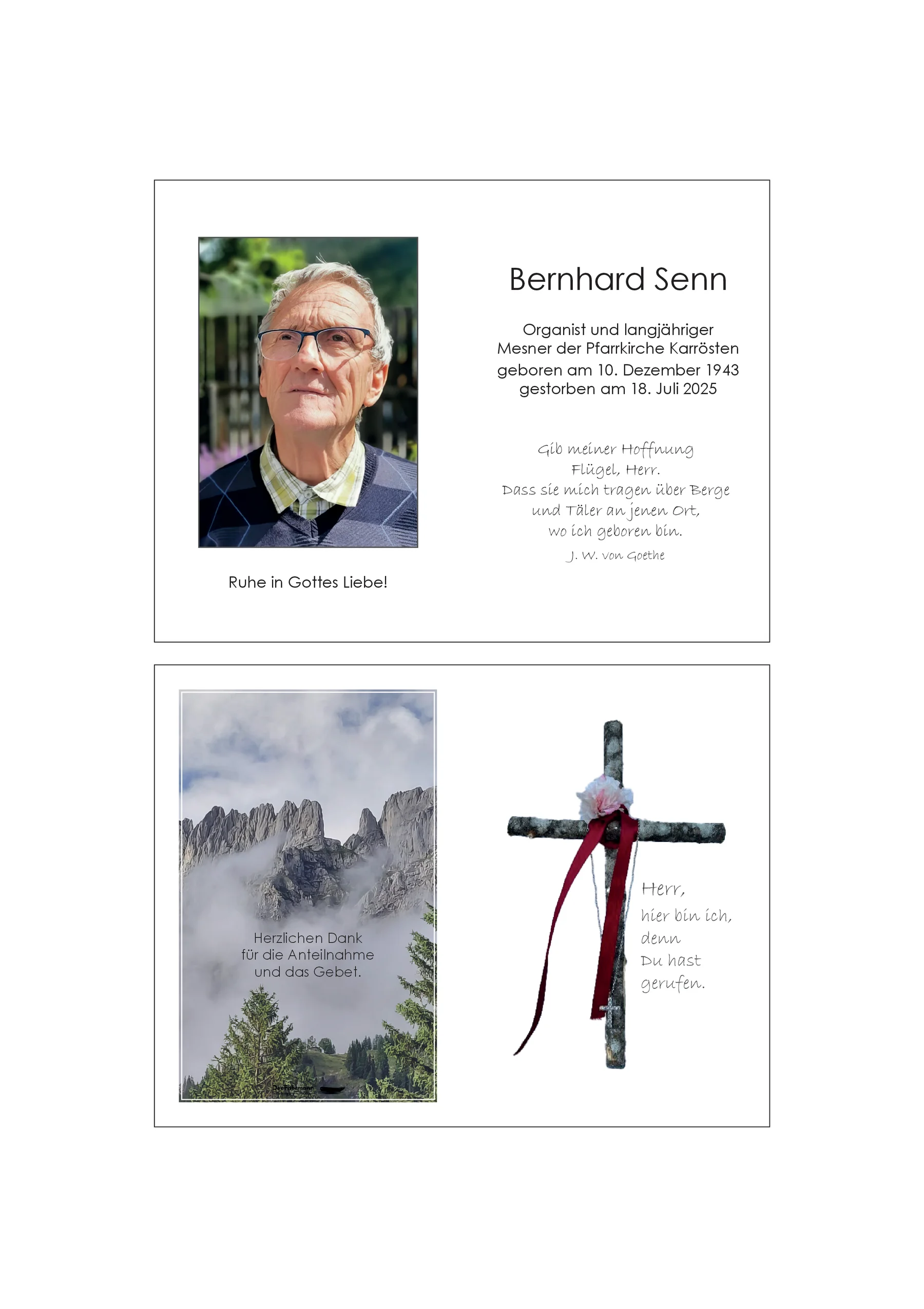 Herzliches Beileid! Fam. Franz Bernhart