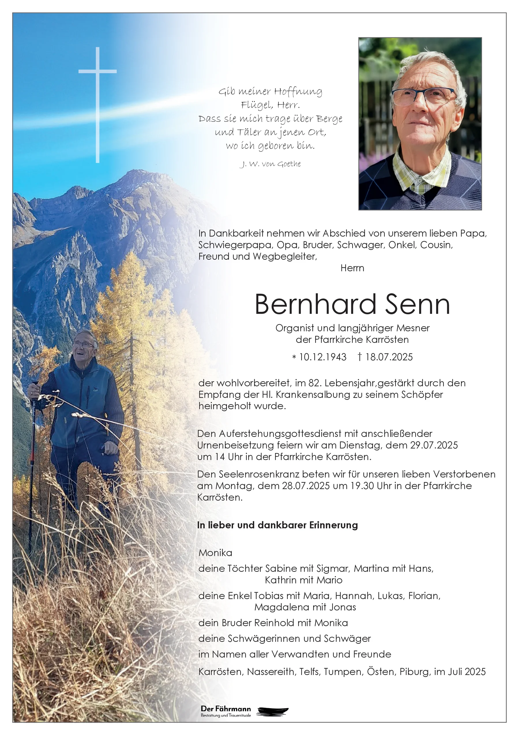 Ruhe sanft in Gottes Hand Bernhard. Fam. Schatz