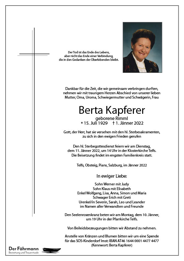 Herzliches Beileid, Ruggenthaler Maria