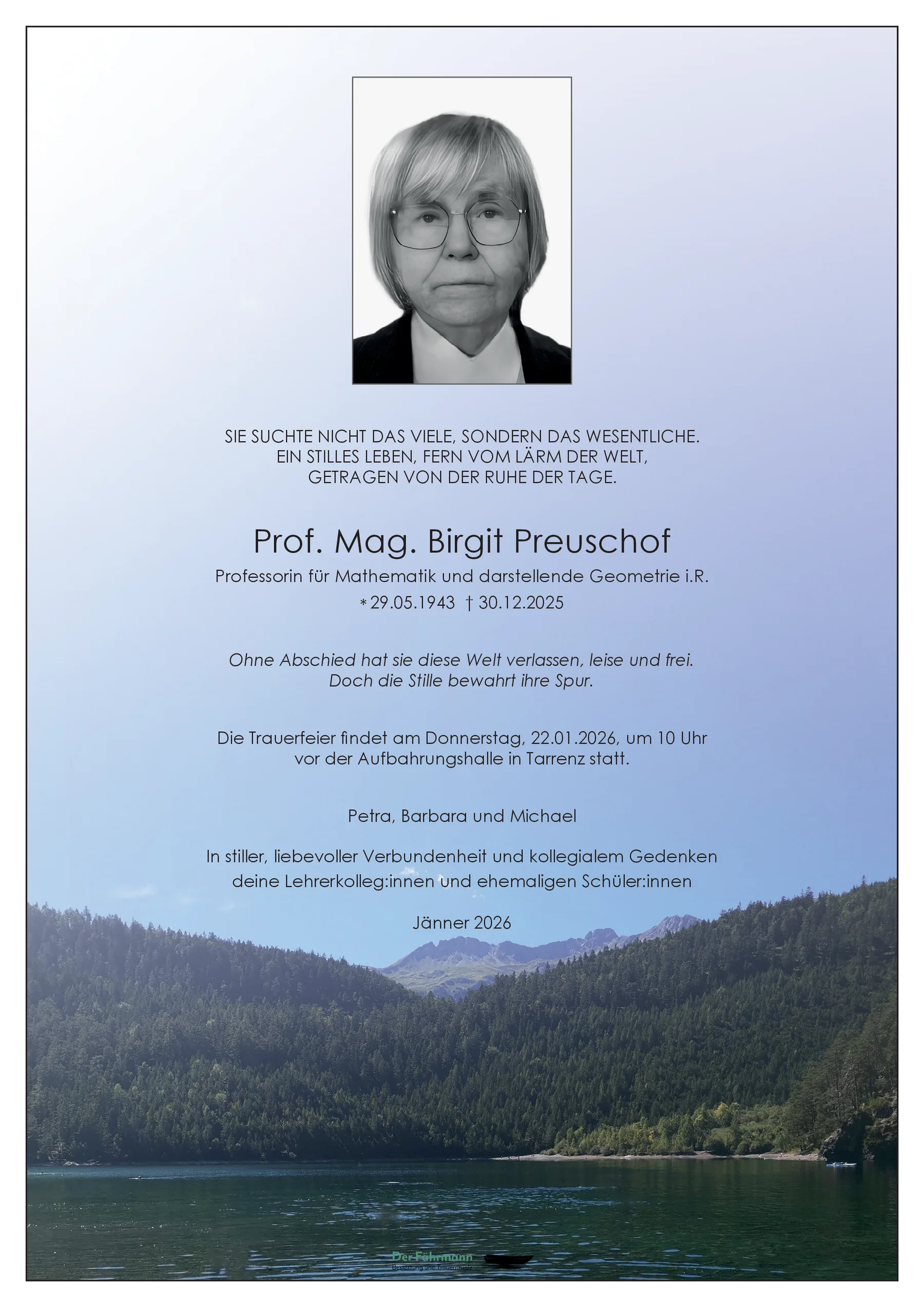 Ruhe in Frieden, liebe Birgit. Dein Kollege am BRG Landeck Roman Spiss