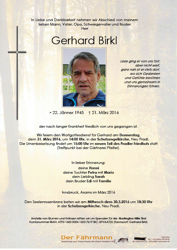 Kondolenzbuch für Birkl Gerhard