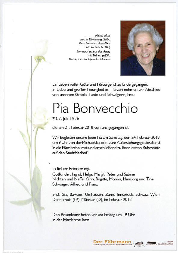 Kondolenzbuch für Bonvecchio Pia