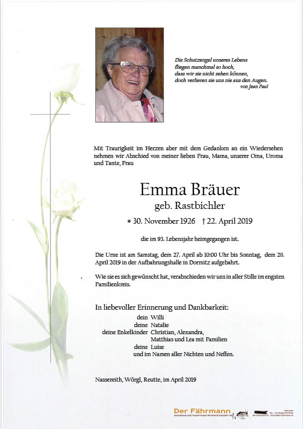 Unser aufrichtiges Beileid zum Heimgang eurer lieben Emma.