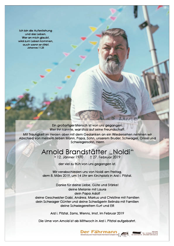 Kondolenzbuch für Brandstätter Arnold