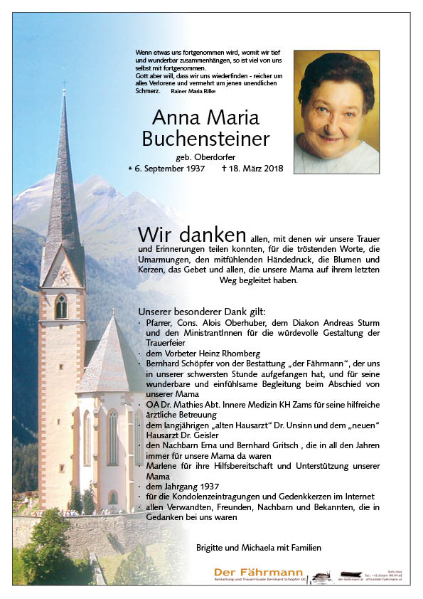 Kondolenzbuch für Buchensteiner Anna Maria