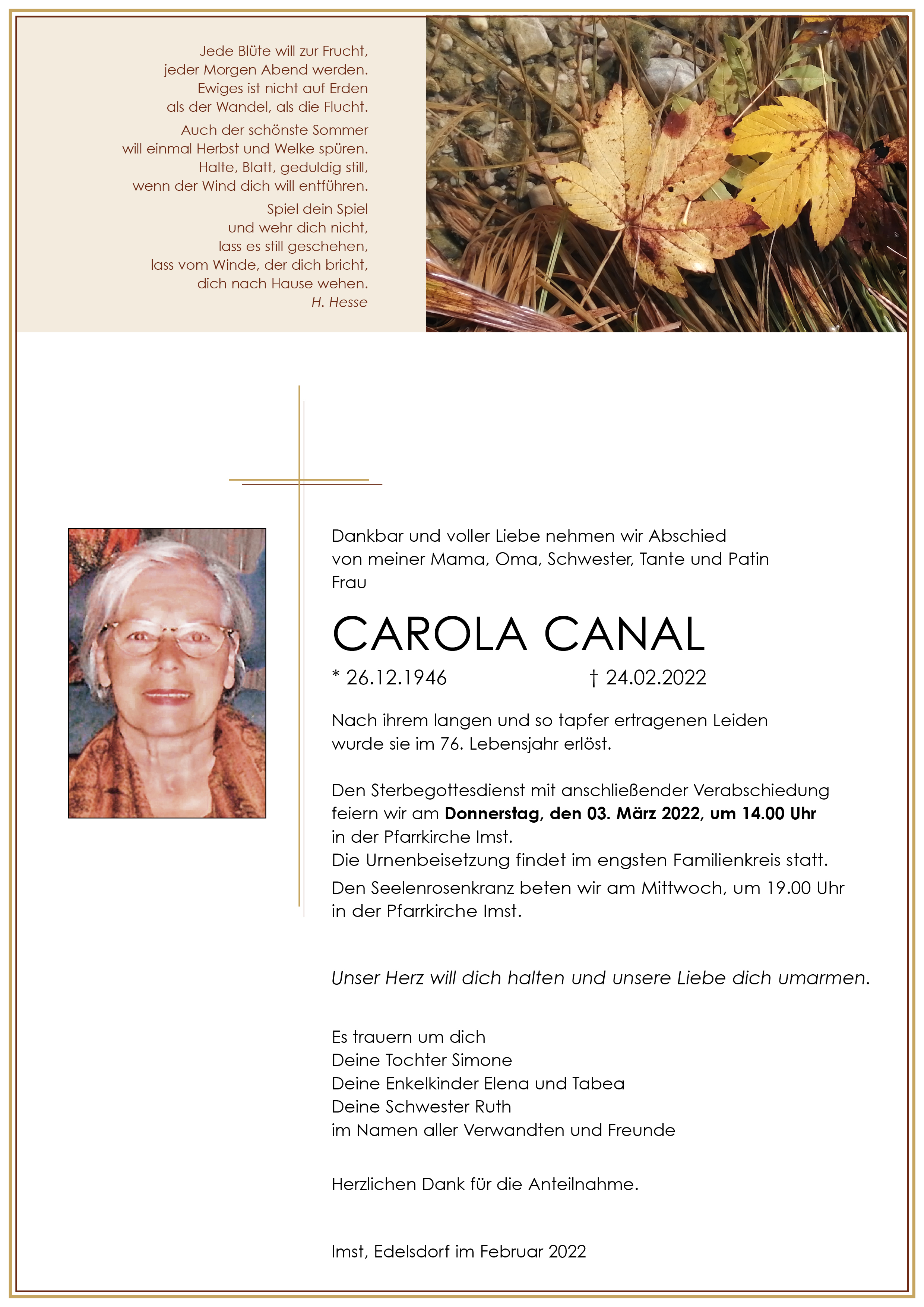 Kondolenzbuch für Carola Canal