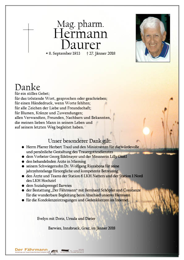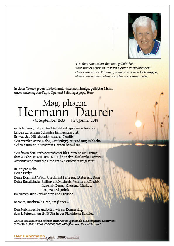 In den schweren Stunden des Abschiednehmens sind wir in Gedanken bei euch. Wir hoffen, dass ihr in den schönen Erinnerungen an euren lieben Harry Trost finden werdet. Möge Gott euch Kraft geben. Aufrichtige Anteilnahme von Karin und Wolfgang Brugg