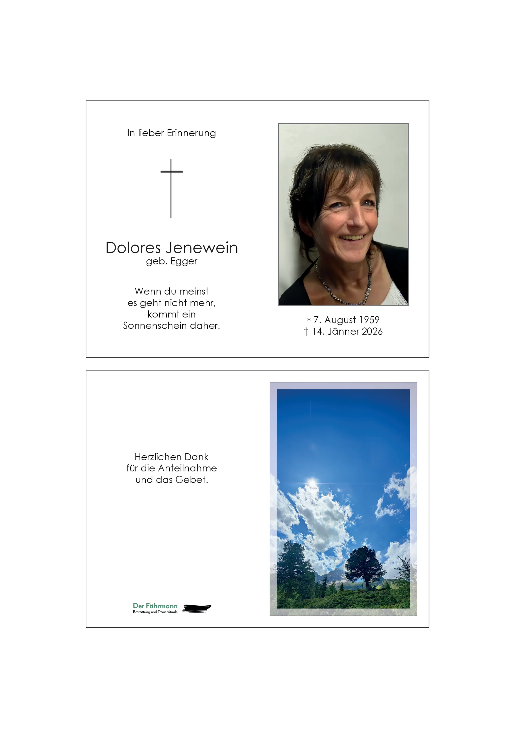 Kondolenzbuch für Dolores Jenewein