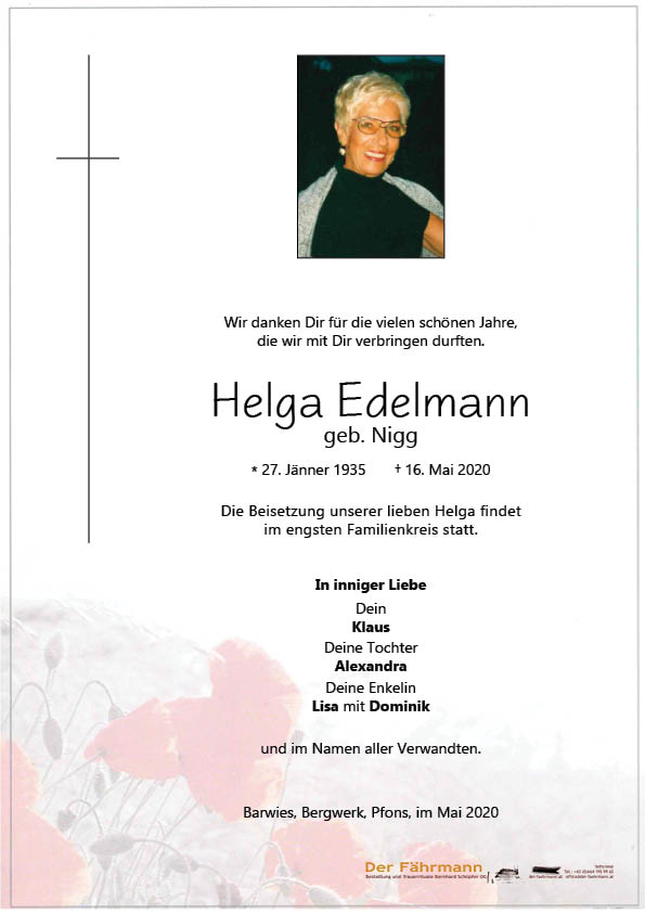 Kondolenzbuch für Edelmann Helga