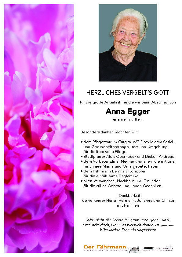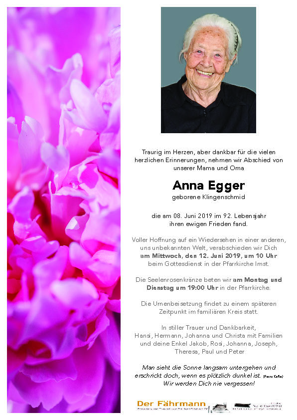 Kondolenzbuch für Egger Anna