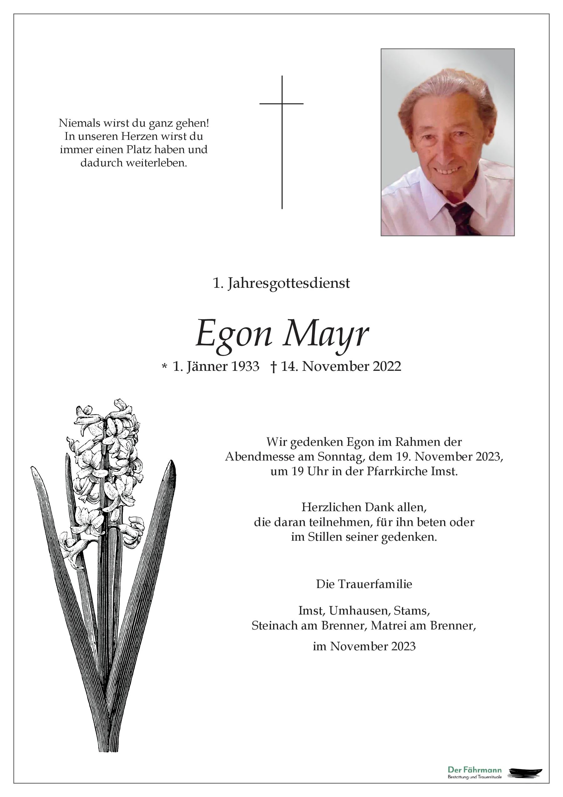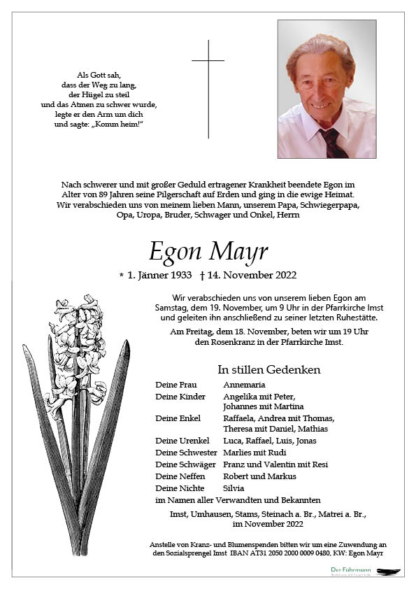 Kondolenzbuch für Egon Mayr
