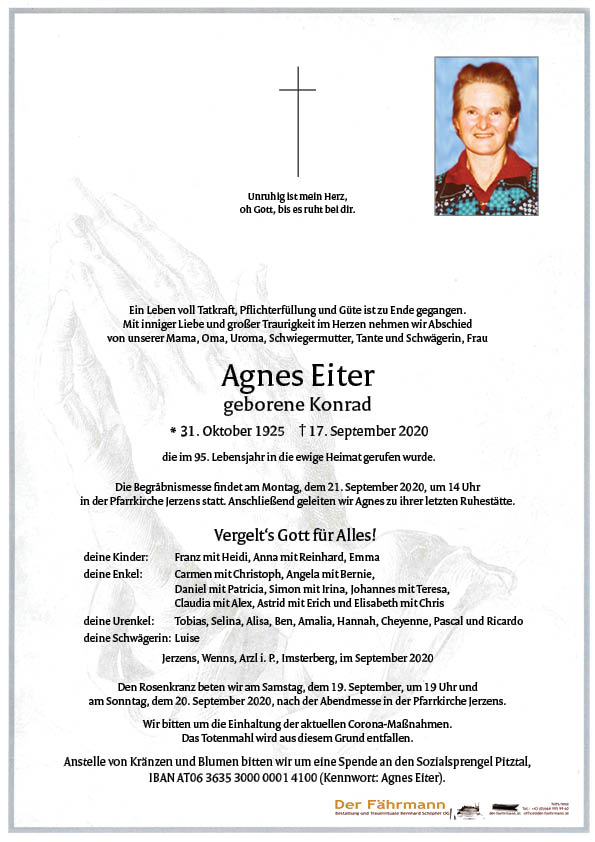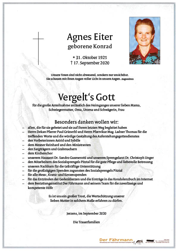 Kondolenzbuch für Eiter Agnes