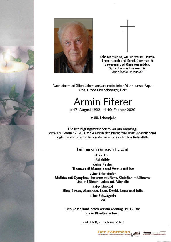 Kondolenzbuch für Eiterer Armin