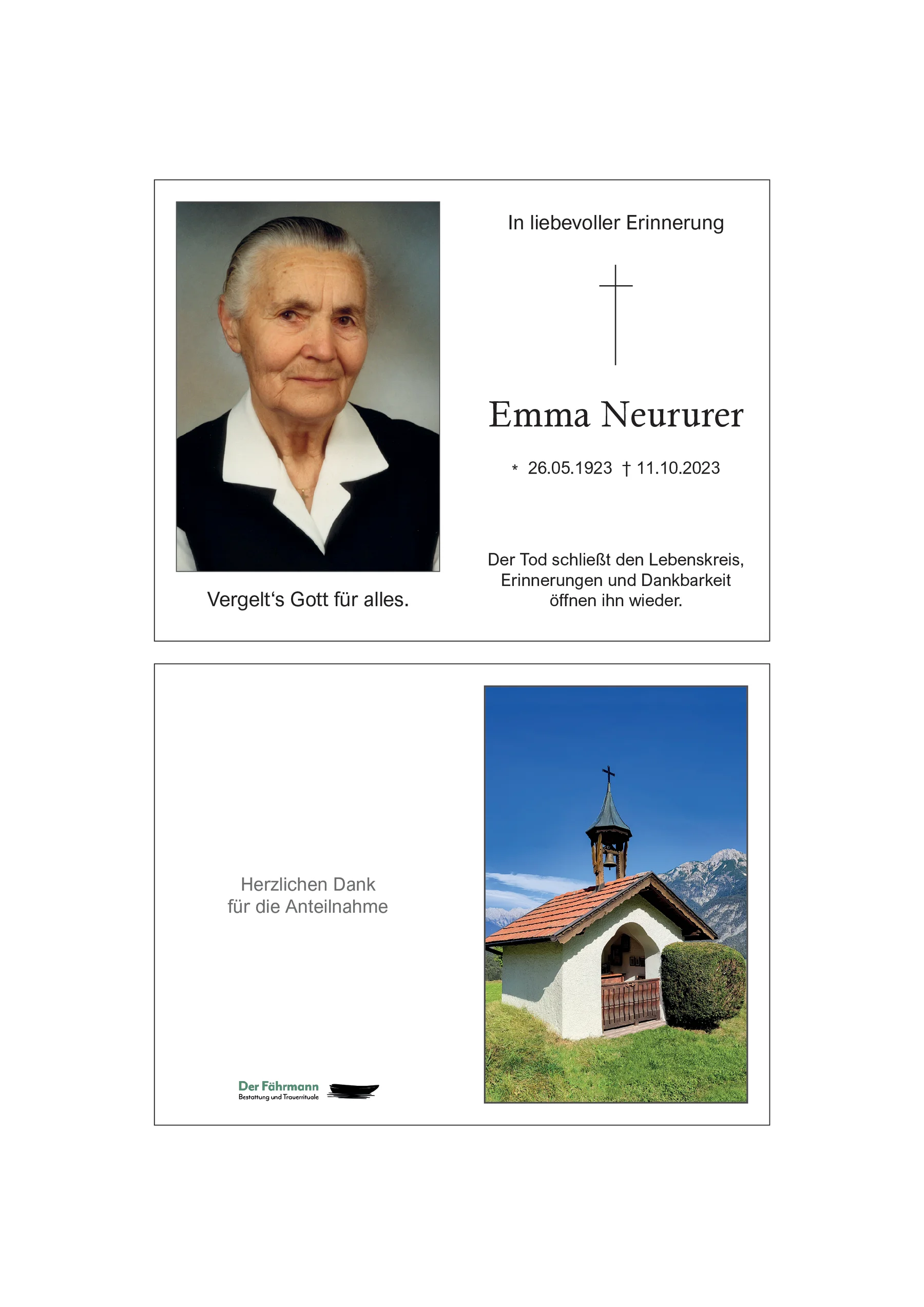 Kondolenzbuch für Emma Neururer