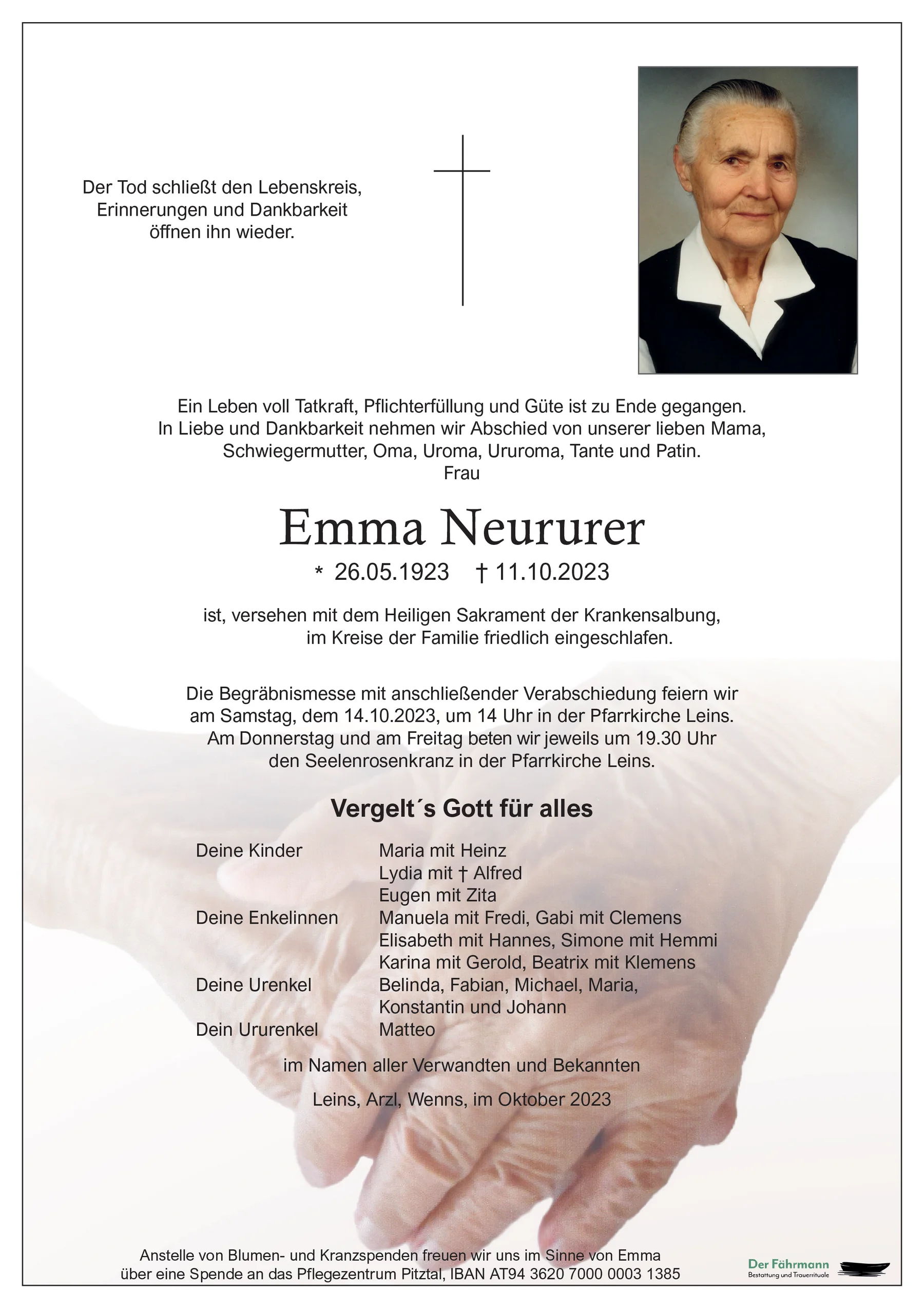 Ruhe in Frieden, Irma Neururer, Arzl