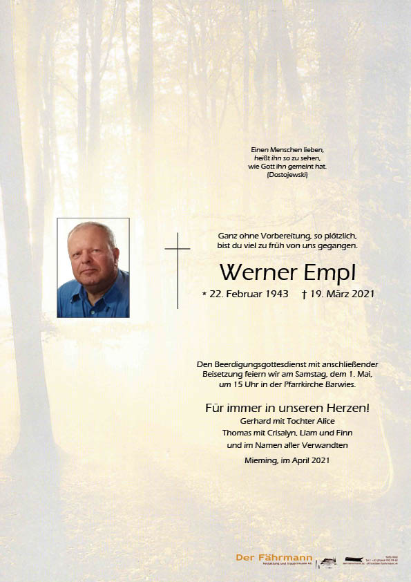 Ruhe in Frieden lieber Werner, Fam. Oberparleiter