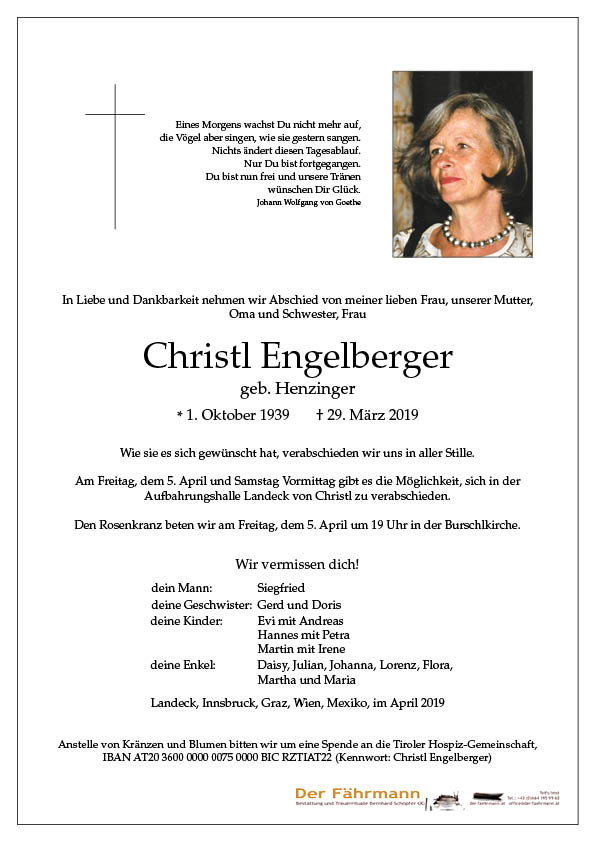 Aufrichtige Anteilnahme Zangerl Herbert Prutz/Landeck