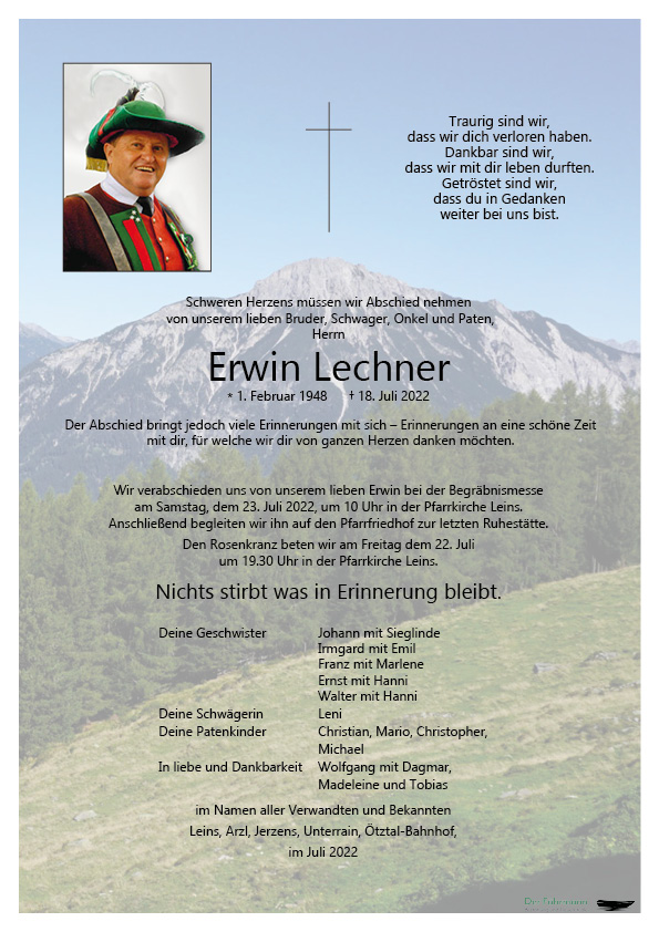 Kondolenzbuch für Erwin Lechner