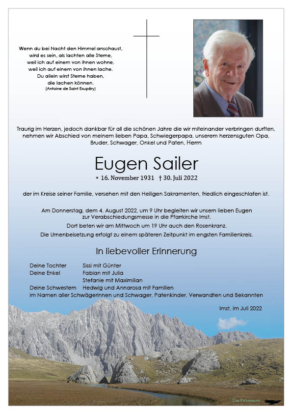 Kondolenzbuch für Eugen Sailer
